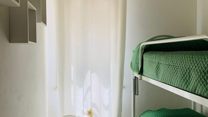 A room with a bunk bed with 2 places.